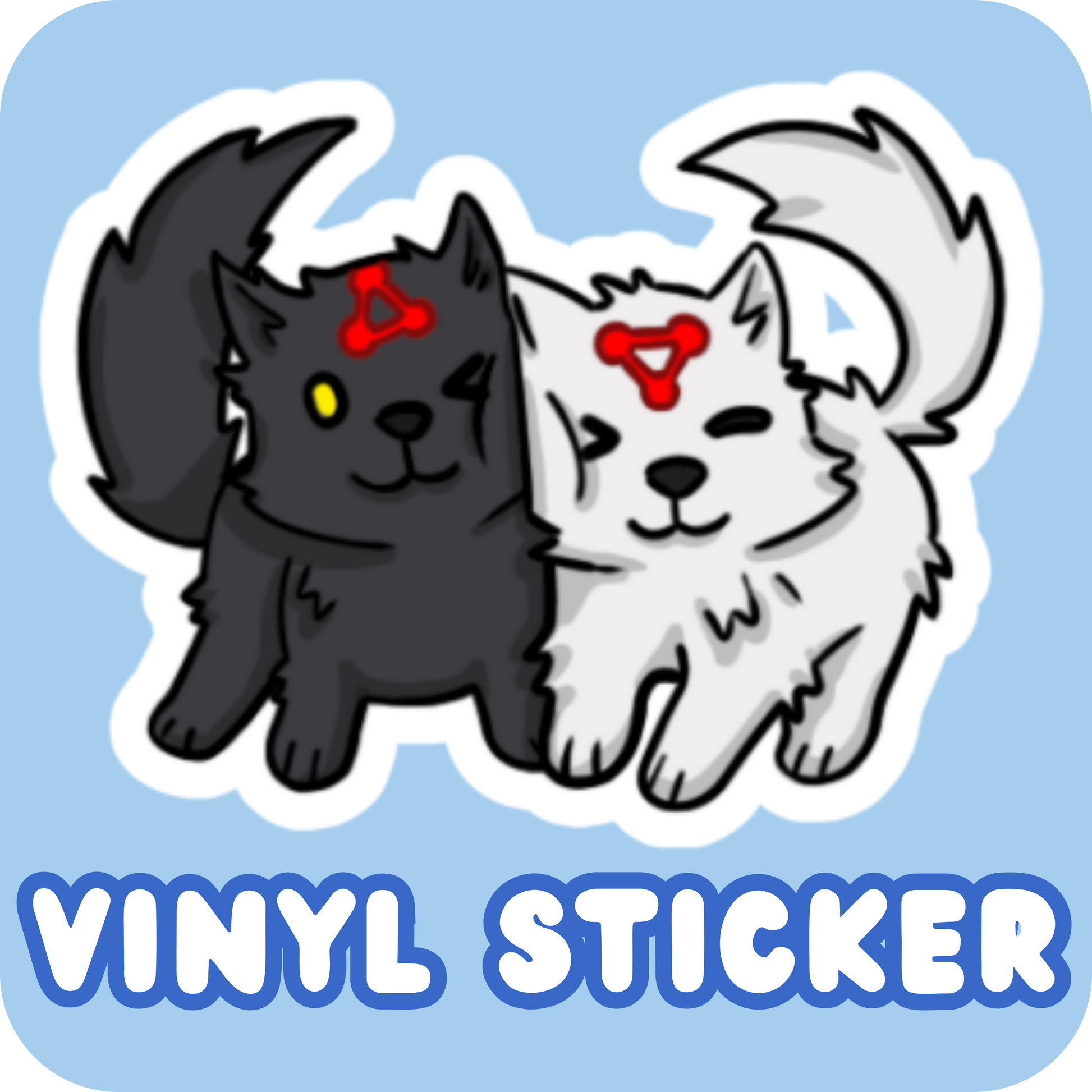 For Jujutsu Kaisen fans, this adorable sticker depicts a cute version of a Divine Dog, based on the Shikigami a user receives when they inherit the Ten Shadows technique. They are summoned by forming the shadow puppet of a dog's head In the anime, there are a pair of twin wolves, one is white and the other one is black. Megumi uses Divine Dogs to defeat weaker curses.