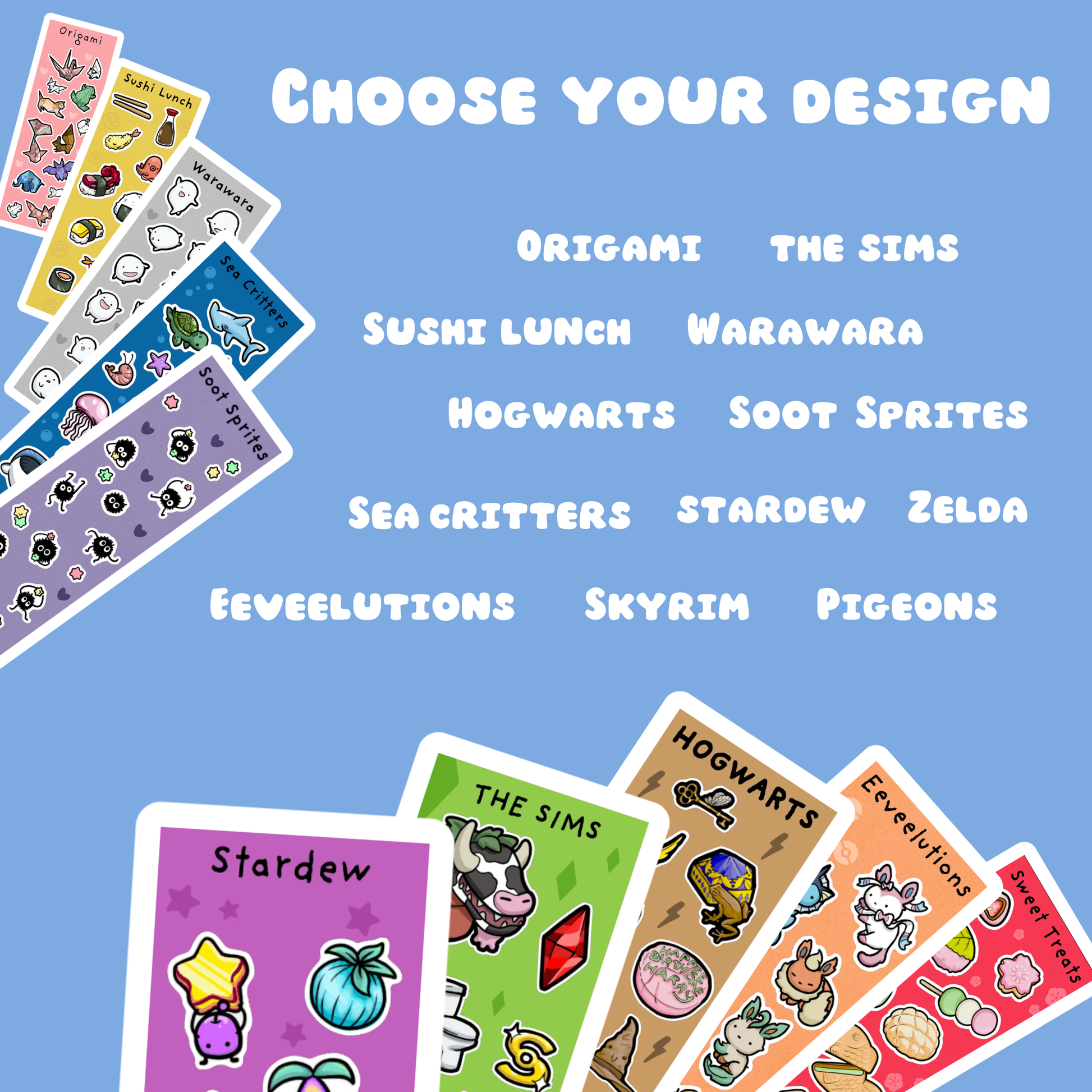 These sticker sheets have several miniature stickers that peel away individually. They measure 53mm by 157mm